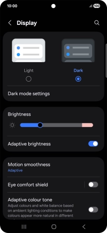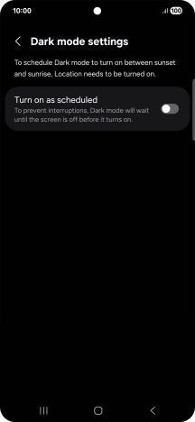 If you select Custom schedule, follow the instructions on the screen to select the required period of time for dark mode.