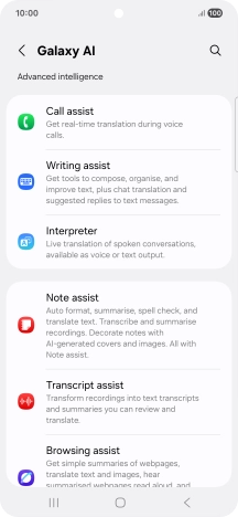 To use Galaxy AI to translate a conversation, slide your finger downwards starting from the top right side of the screen.