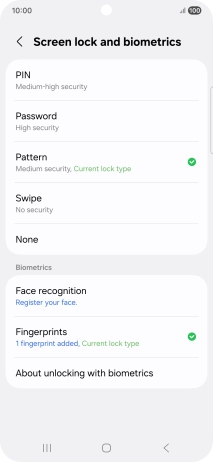 Press Screen lock and biometrics and key in the additional phone lock code you created earlier.