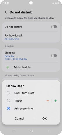 Press Add schedule and follow the instructions on the screen to select settings for automatic activation of Do Not Disturb.
