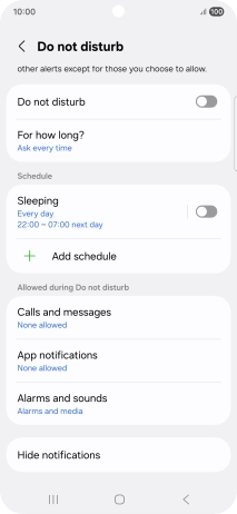 Press Add schedule and follow the instructions on the screen to select settings for automatic activation of Do Not Disturb.