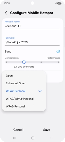 Press WPA3-Personal to password protect your Wi-Fi hotspot.