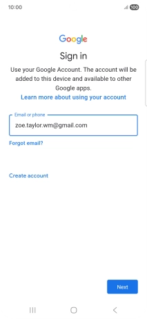 If you don't have a Google account, press Create account and follow the instructions on the screen to create an account.