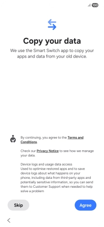 You can transfer the contents of another phone to your phone when it's activated for the first time and after a factory reset. When this screen is displayed, your phone is ready to transfer content from another phone.
