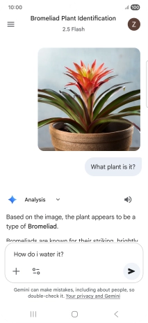 Press the camera icon and point the camera lens at the required subject or object to ask questions about it.