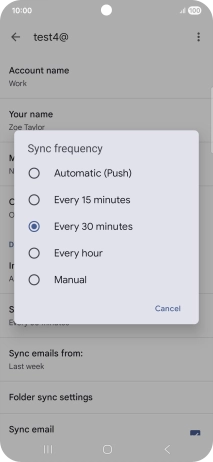 8. Select setting for retrieval of new email messages