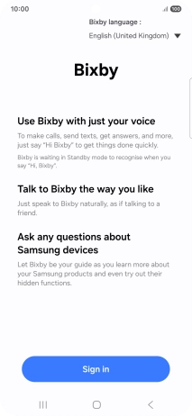 Press Sign in and follow the instructions on the screen to log on to your Samsung account.