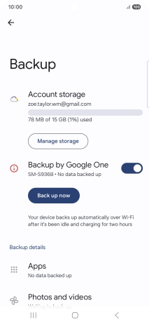 Press the indicator next to "Backup by Google One" to turn on the function.