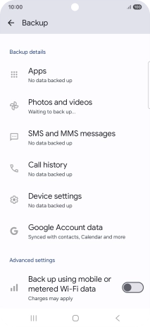 Press the indicator next to "Back up using mobile or metered Wi-Fi data" to turn the function on or off.