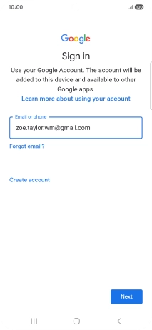 If you don't have a Google account, press Create account and follow the instructions on the screen to create an account.