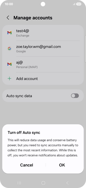 Press the indicator next to "Auto sync data" to turn the function on or off.