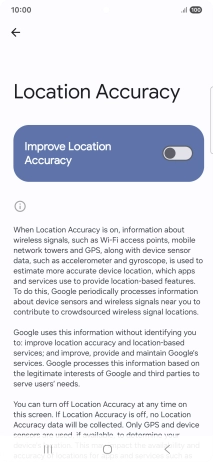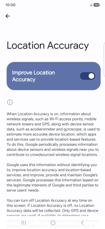 If you press the indicator next to "Improve Location Accuracy" to turn off the function, your phone can find your exact position using the GPS satellites but it may take longer as there is no access to supplementary information from the mobile network or nearby Wi-Fi networks.