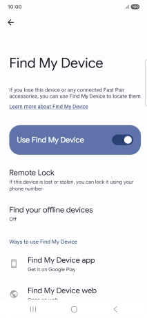 Press the indicator next to "Use Find My Device" to turn on the function.
