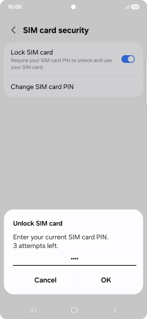 Press the indicator next to "Lock SIM card" to turn the function on or off.