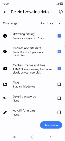 Press Delete browsing data.