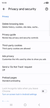 Press Privacy and security.
