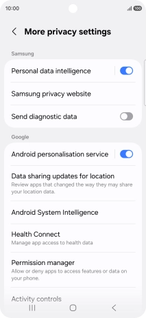 Press Security and privacy.