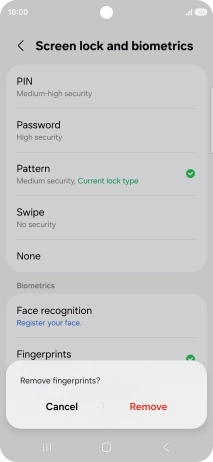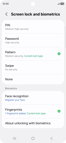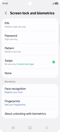 Press Screen lock and biometrics and key in the additional phone lock code you created earlier.