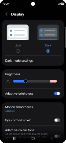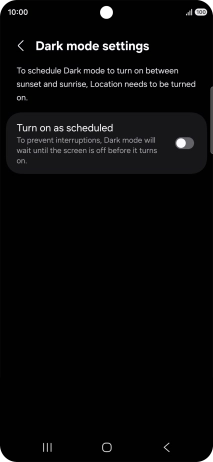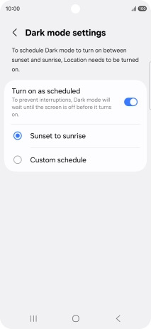 If you select Custom schedule, follow the instructions on the screen to select the required period of time for dark mode.
