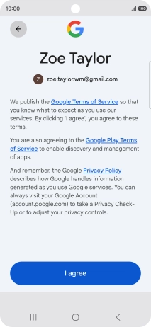 Press I agree and follow the instructions on the screen to select settings for your Google account.