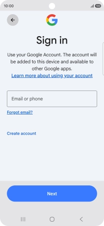 If you don't have a Google account, press Create account and follow the instructions on the screen to create an account.