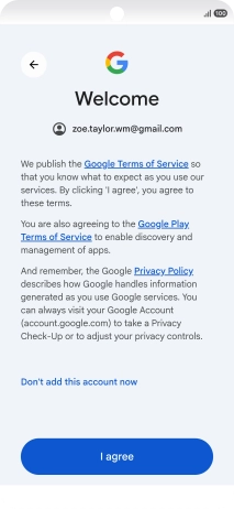 Press I agree and follow the instructions on the screen to select settings for your Google account.