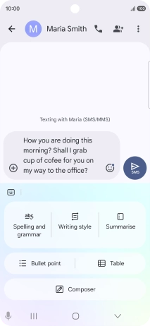 To generate a text, press Composer and follow the instructions on the screen to use the function.