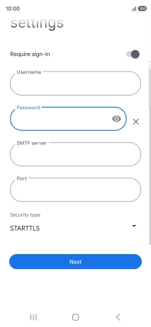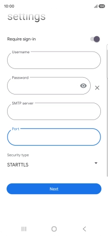 Press the field below "Username" and key in the username for your email the email provider's outgoing server.