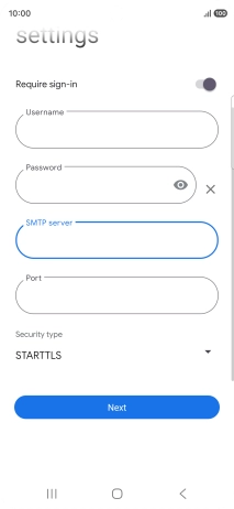 Press the field below "SMTP server" and key in the name of your email provider's outgoing server.