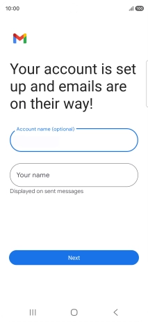If this screen is displayed, you email account has been recognised and set up automatically. Follow the instructions on the screen to key in more information and finish setting up your phone.