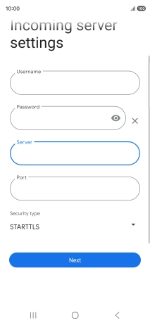 Press the field below "Server" and key in the name of your email provider's incoming server.