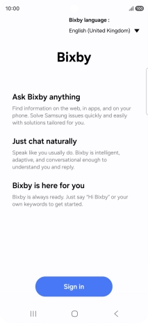 Press Sign in and follow the instructions on the screen to log on to your Samsung account.