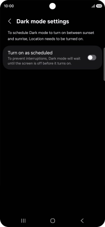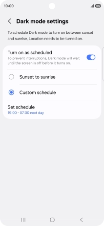 If you select Custom schedule, follow the instructions on the screen to select the required period of time for dark mode.