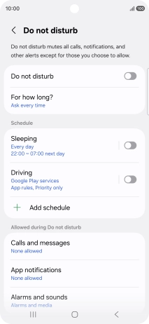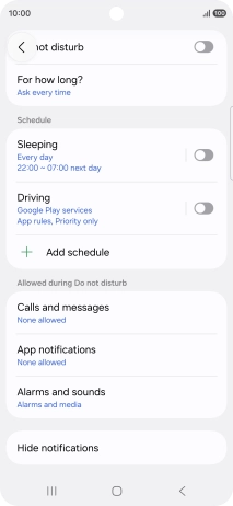 Press Add schedule and follow the instructions on the screen to select settings for automatic activation of Do Not Disturb.