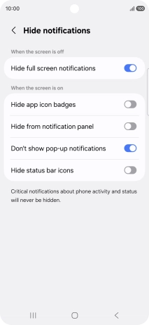 8. Turn display of notifications on or off