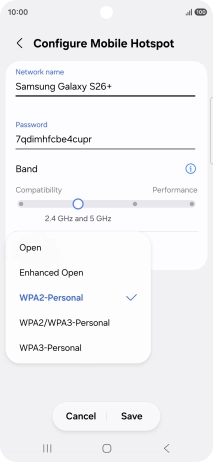 Press WPA3-Personal to password protect your Wi-Fi hotspot.