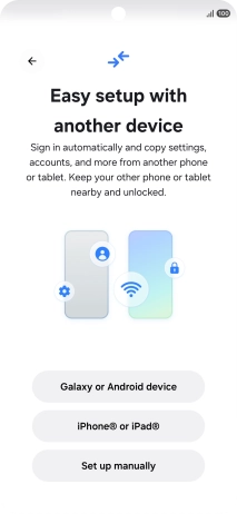 Press the required setting to transfer content from another device or press Set up manually.