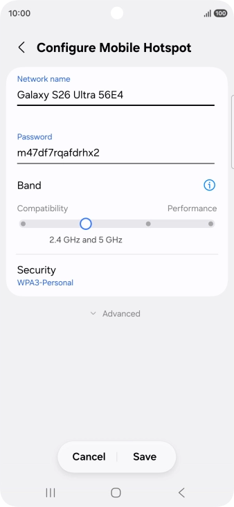 Press WPA3-Personal to password protect your Wi-Fi hotspot.