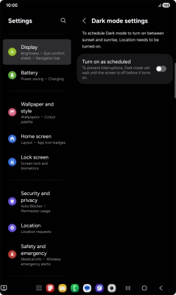 You can set your tablet to use a dark theme so you can use your tablet in dark surroundings and not inconvenience other people. Furthermore, you can create a schedule for automatic change of theme at certain times.