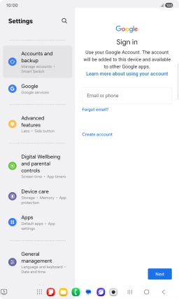 Activate Google account on your Samsung Galaxy Tab A11 Android 16