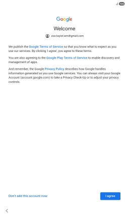 Press I agree and follow the instructions on the screen to select settings for your Google account.