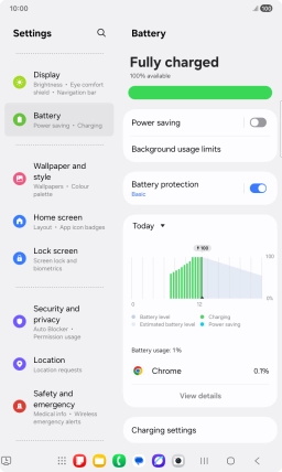 Press the indicator next to "Battery protection" to turn the function on or off.