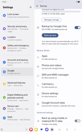Press the indicator next to "Backup by Google One" to turn on the function.