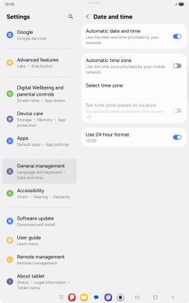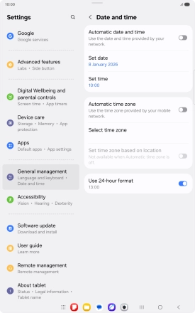 Press the indicator next to "Automatic date and time" to turn on the function.