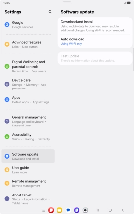 Press Download and install. If a new software version is available, it's displayed. Follow the instructions on the screen to update the tablet software.