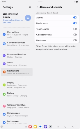 You can select which tablet functions that can use sound and vibration when Do Not Disturb is turned on.