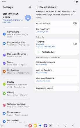 Press the indicator next to "Do not disturb" to turn the function on or off.