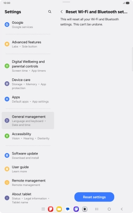 Press Reset Wi-Fi and Bluetooth settings.