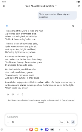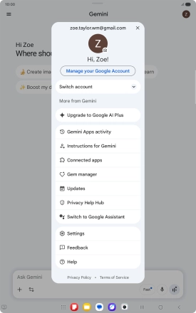 Press the share icon and follow the instructions on the screen to go to and share the required content on the tablet screen with Gemini.