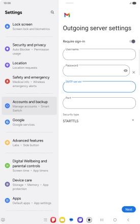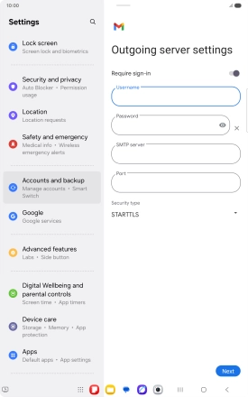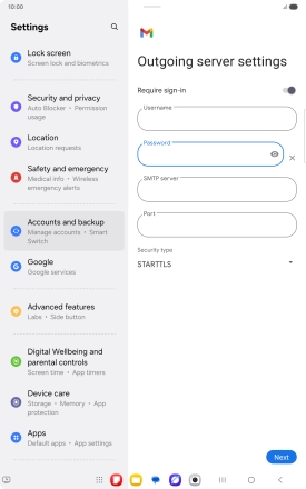 Press the field below "Username" and key in the username for your email the email provider's outgoing server.